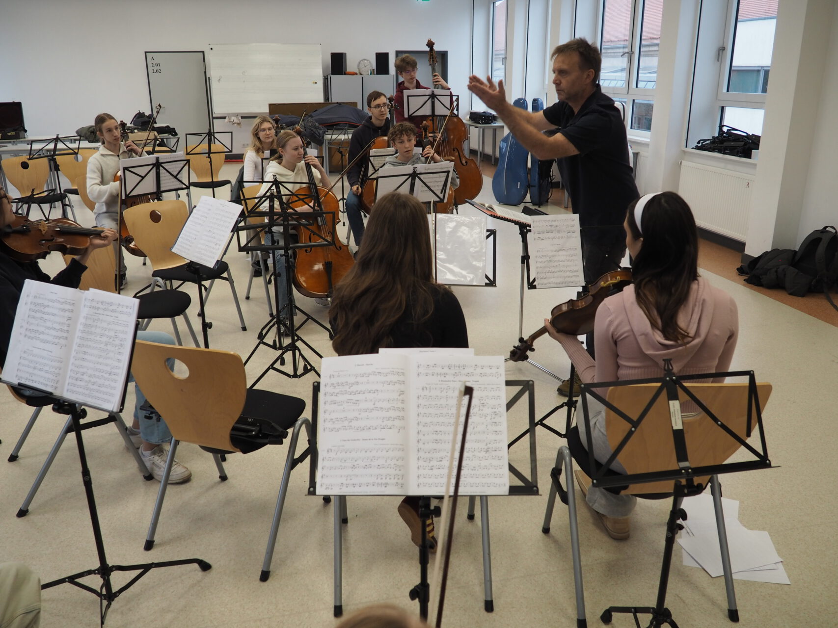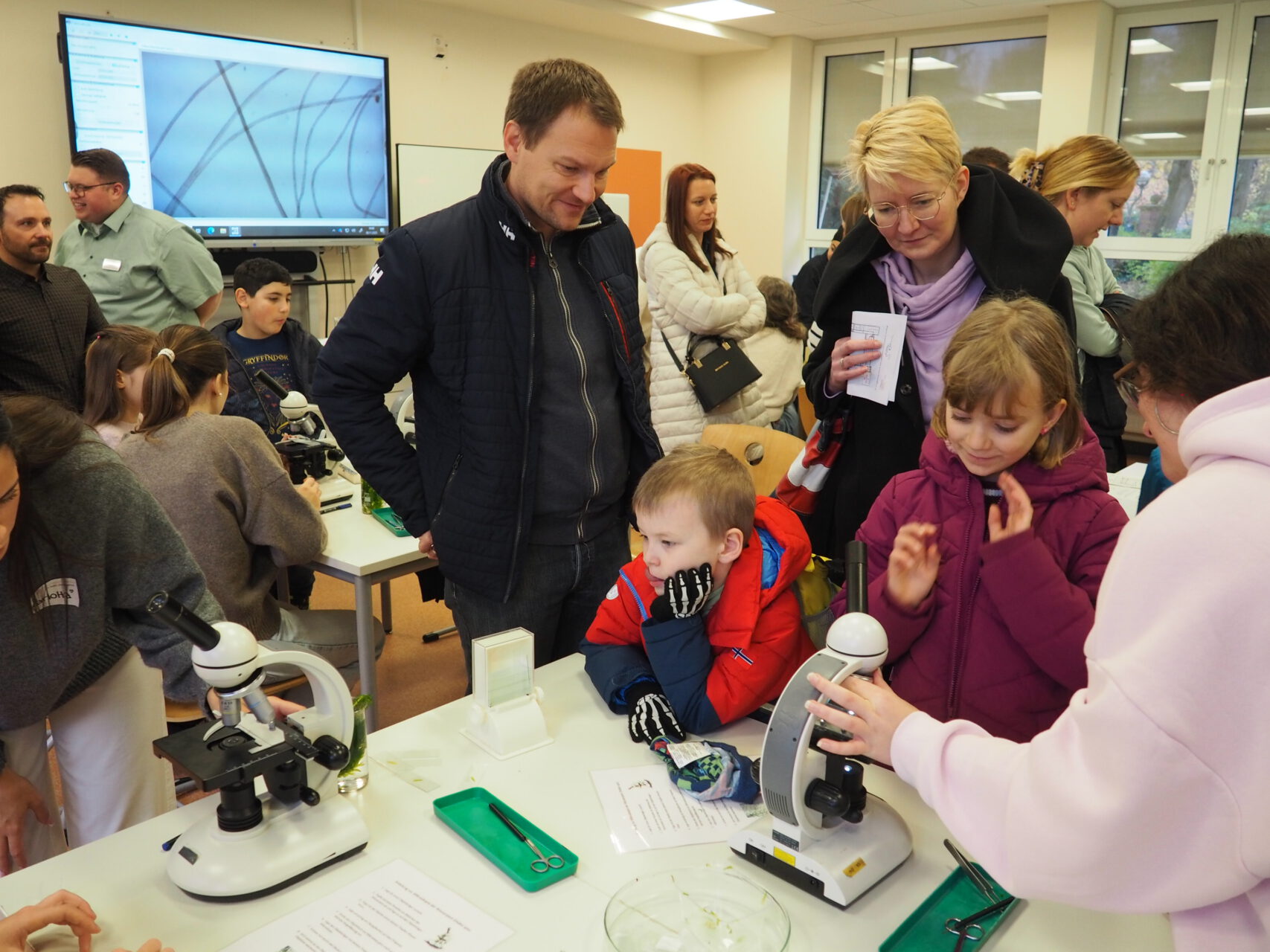 Bei den Biologen beispielsweise konnte ein Mikroskop-Führerschein abgelegt werden, die Mathematiker hatten sich Knobeleien ausgedacht, die Spanier boten handgemachte Sangria an. Bei den Physikern konnte man Sterne und Planeten beobachten und bei den Musikern konnte man seine musikalischen Fähigkeiten mithilfe von Schülerinnen und Schülern an Tasteninstrumenten unter Beweis stellen. Zusätzlich gab es eine öffentliche Probe der KRS-Orchester live zu erleben. Die Sportabteilung wartete mit Torwerfen und Raumhockey auf. So konnte man in dieser lockeren Atmosphäre auch leicht mit den Pädagoginnen und Pädagogen der KRS in einen regen Austausch kommen, wovon auch reger Gebrauch gemacht wurde.