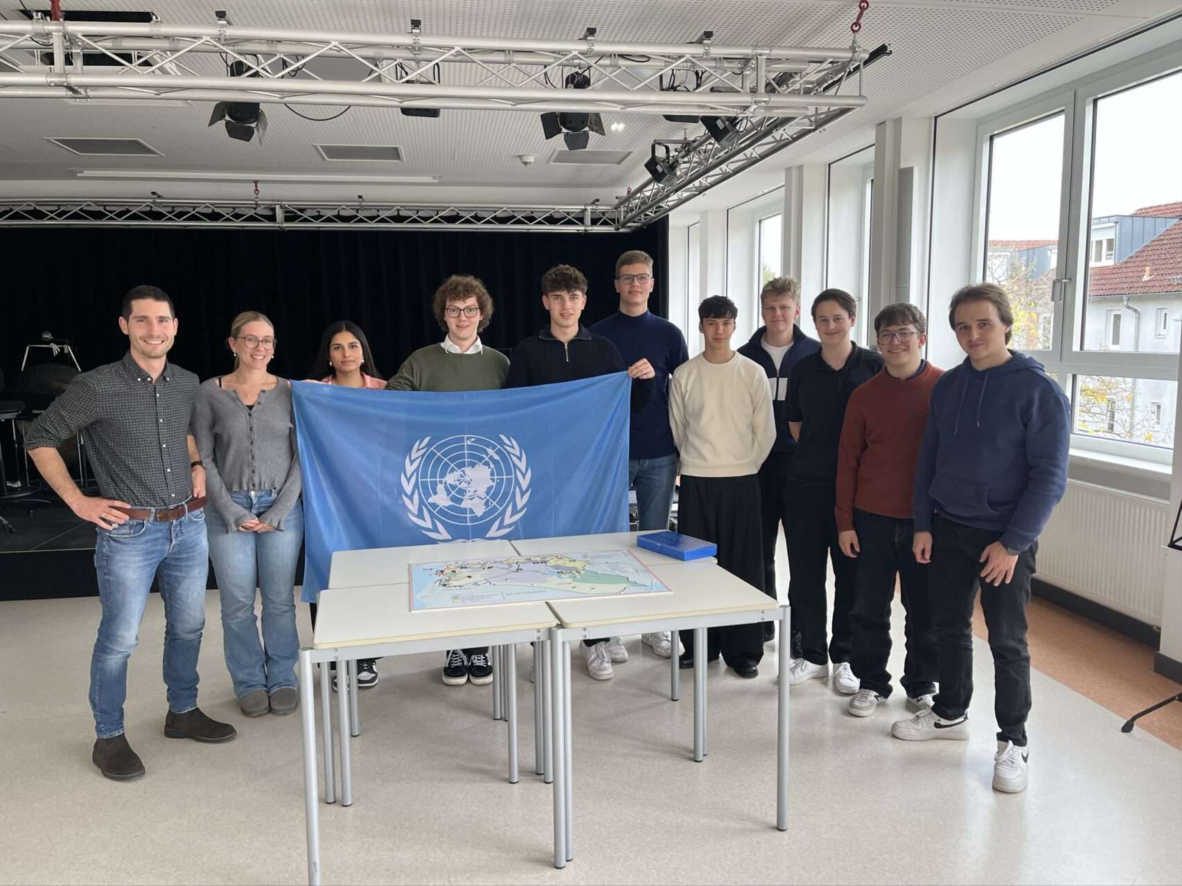 So haben wir mithilfe der Bundeswehr eine UN-Simulation zum Syrien-Irak-Konflikt vor dem Hintergrund des IS durchgeführt. Jede Schülerin und jeder Schüler übernahm dabei die Rolle eines direkt oder indirekt betroffenen Landes, arbeitete sich in dessen politische, wirtschaftliche und militärische Interessen ein und vertrat diese dann in den Verhandlungen der UN, welche ebenfalls eine Schülerin übernahm. Dies stellte sich schnell als keine leichte Aufgabe heraus.