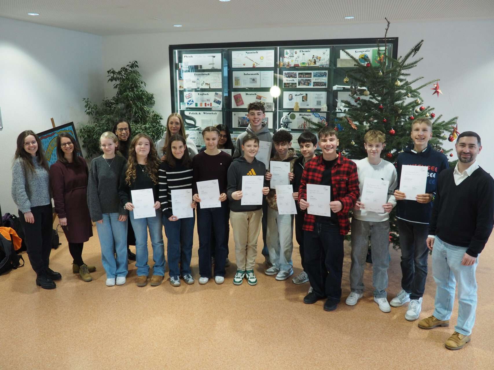 In der Oberstufe lautete das Debattenthema „Soll für das Fahren von E-Scootern eine Führerscheinpflicht gelten?“. Hier konnten sich Hanna Singh mit Platz eins und Mia Specht mit Platz zwei durchsetzen. Beide KRS-Schülerinnen werden ebenfalls im Februar im Regionalwettbewerb für die KRS antreten. Auf Platz drei landete Max Tischberger und Platz vier Sophie Engelhardt. Ein großer Dank für die Unterstützung des Wettbewerbs ging zudem an Hanna Singh, Elisabeth Landgraf und Annalena Grimm als Jury sowie an Sam El Youssef, der die Zeit im Blick hatte. „Ihr alle habt zielgenaue Debatten geführt, gute Argumente für Eure Positionen gesammelt und dabei stets auch auf sachlich-fairer Ebene miteinander gestritten“, lobt die KRS-Pädagogin und Betreuerin Sabine Maier die teilnehmende Schülerschar.