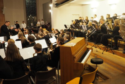 Auch die zum Teil durchgeführten Rochaden in den Leitungsaufgaben der KRS-Ensembles wurden mit Bravour gemeistert. Daniel Ulb, neuer Leiter des KRS-Blasorchesters, überraschte das Publikum beispielsweise in den „Alpine Inspirations“ von Martin Scharnagl mit einem mächtigen Klanggemälde voller stolzer Berge, schwindelerregenden Höhen, glitzernden Bergseen und berauschenden Panorama-Blicken, dabei sehr akzentuiert und filigran in Blech und Schlagwerk dargeboten. Gudrun Hildebrandt hatte ihren ersten Auftritt mit dem KRS-Kinderchor der Klassen fünf und sechs, der drei Stücke aus Uli Führes Weihnachtsmusical „Am Himmel geht ein Fenster auf“ mit offenen Stimmen sehr konzentriert und gut wort-verständlich darzubieten wusste. Souverän begleitet wurde die Kinderschar von Uwe Heller am Flügel.