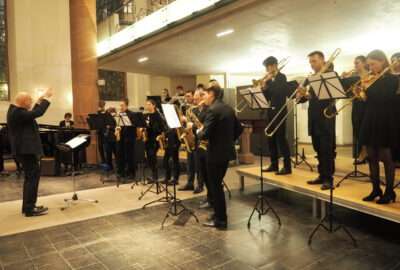 Die KRS-Big-Band unter der bewährten Leitung von Stefan Glück überraschte mit dem ukrainischen Weihnachtsstück „Shchedryk“, hierzulande besser bekannt als „Carol Of The Bells“. Der fordernde Swing haucht dem eigentlich sehr ernsthaften Werk eine gewisse Leichtigkeit ein, rhythmisch auf den Punkt knackig umgesetzt. Sanft rieseln die Schneeflöckchen beim „I’ll Be Home For Christmas“ von der Bühne bevor „A Rockin Merry Christmas“, das „Joy To The World“ zum Thema hat, doch mal ein wenig Sternenfunkeln verbreitet.