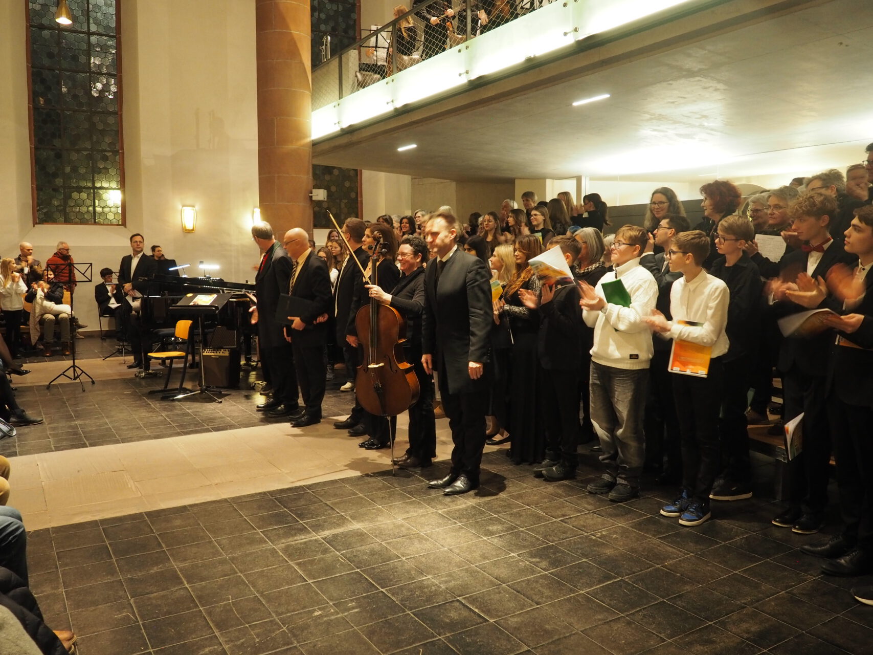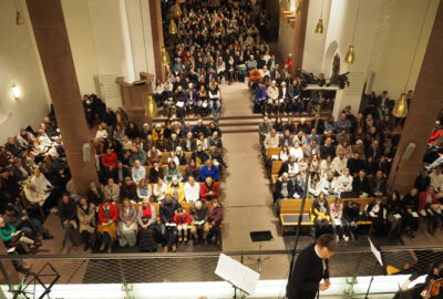 Den sehr ergreifenden Schlusspunkt setzt das KRS-Sinfonierochester mit Rolf Rudins zarter Variation über „Es ist ein Ros entsprungen“, das dann im Original vom großen Chor aufgegriffen und zu guter Letzt samt Orgel von der gesamten Besucherschar gesungen wird – welch ein fulminantes Finale. Insgesamt war der Duktus des diesjährigen KRS-Weihnachtskonzertes beileibe nicht ganz so glitzernd-sternenlastig und glöckchen-beseelt wie sonst üblich. Die Literatur-Auswahl sorgte jedenfalls für viele wohltuende Momente des Innehaltens, der inneren Einkehr und der oft so beschworenen Besinnlichkeit, was in der Summe gesehen sich vor allem auch sehr positiv auf die gebotene Qualität auswirkte. Und vielleicht war das Programm in seinem roten Faden ganz bewusst der geopolitischen Lage geschuldet: „Give us Peace“ singt der Chor unter anderem – diese Botschaft ist an diesem zweistündigen Konzertabend auf jeden Fall bei jedem angekommen.