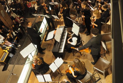 Ganz barock wird es dann mit Vivaldis Concerto in d-Moll op.3/11, das von den Solistinnen und Solisten des KRS-Sinfonieorchesters, Manfred Hubert, Andrea Laczko (Violine), Nickoline von Gossler (Cello) und Borjan Jowanow (Cembalo) in einer lupenreinen Intonation perfekt dargeboten wird. Gleichzeitig erlebt Jens Weismantel, der das KRS-Sinfonieorchester von Petra Weiß übernommen hat, seine gelungene „Feuertaufe“ als Orchesterchef. Zuckersüß perlend aber auch zupackend zugleich die Geschichte von Tschaikowskys „Nussknacker“, der hier in Form einer Suite den interpretiert wird. Sehr abgerundet präsentiert sich der Streicherklang (Leitung: Sophia Schüller) im Zusammenspiel mit den Holzbläsern. Hervorzuheben sei hier auch der „Tanz der Rohrflöten“, der von den Querflötistinnen formvollendet umgesetzt wird. Überhaupt kann der ausgewogene Gesamtklang des sinfonischen Klangkörpers sehr überzeugen, der in dieser Form nicht unbedingt an ein Schülerorchester erinnert.