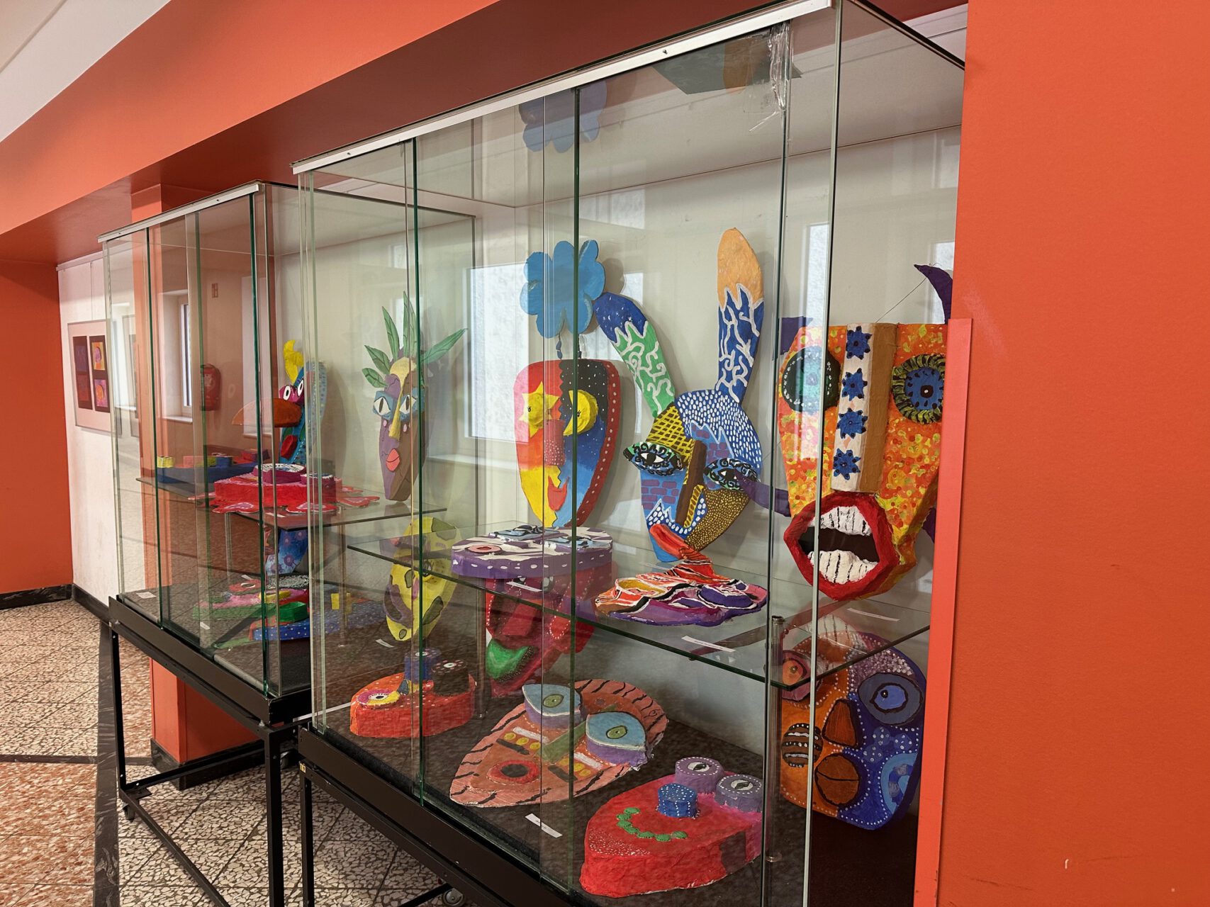 In fast allen Fluren des Hauptgebäudes und der Schlossplatzschule werden in hochwertigen Bilderrahmen, in Vitrinen sowie auf Galeriesockeln in regelmäßigem Wechsel aktuelle Schülerarbeiten ausgestellt und auf wertschätzende Art und Weise für die Schulgemeinde sichtbar gemacht. So wird die Schule ein Präsentationsraum und trägt mit den Zeugnissen kreativen Handelns aus dem Kunstunterricht zur Identifikation im schulischen Alltag bei.