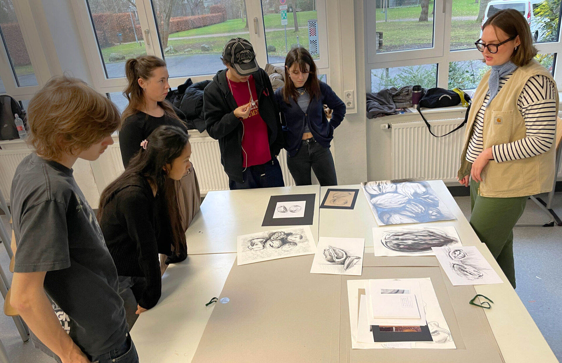 Gastvortrag mit anschließender praktischer Übung ein. Bei dieser Veranstaltung erhalten Schülerinnen und Schüler der Oberstufe Einblicke in den beruflichen Werdegang und die Lebensrealität eines kunstschaffenden Menschen, der bei seinem Vortrag seine künstlerischen Projekte und Herangehensweisen vorstellt.